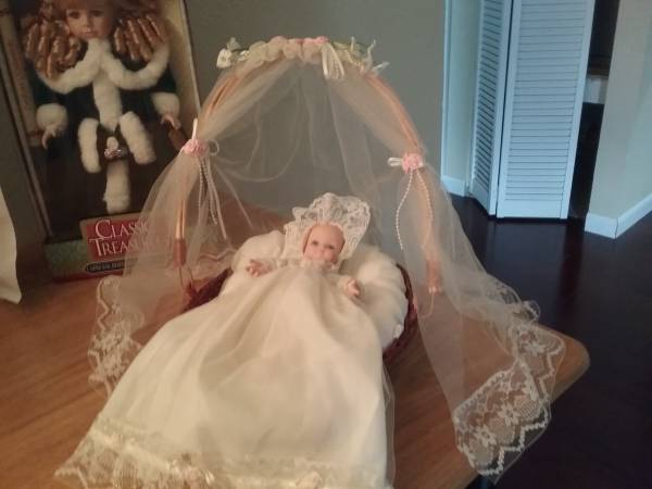 Multiple dolls Will sell separately. ALL PRICES ARE NEGOTIABLE!!!! Winter Romance by Ashton Drake. Never out of box. $40.00 Christmas Doll by Heritage. Never out of box. $20.00 Classic Treasures...